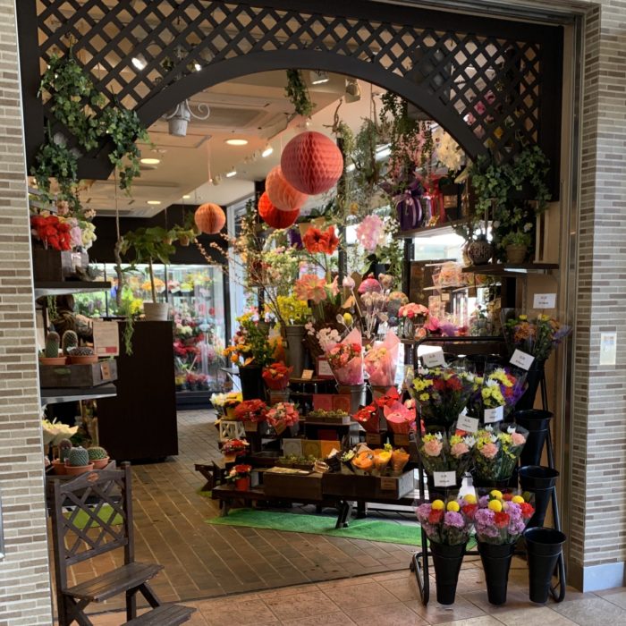 花束を抱えて
