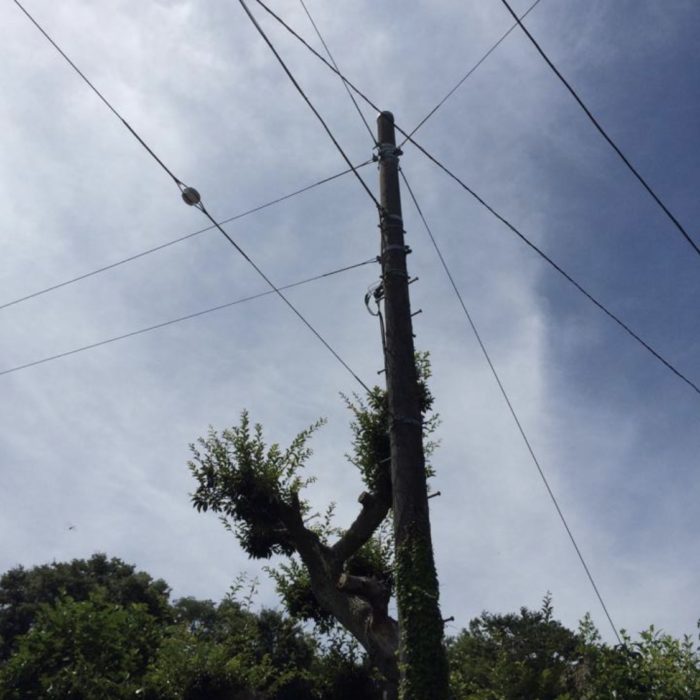 濡れた電信棒にしみいる