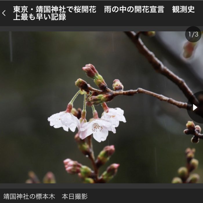 こんな本日にソメイヨシノ開花宣言