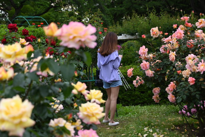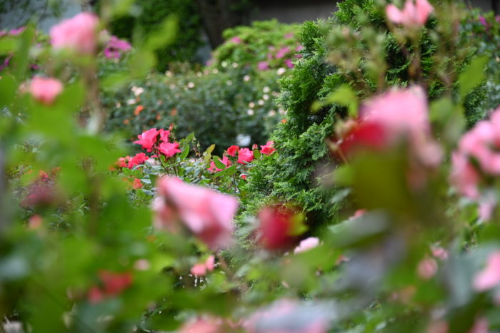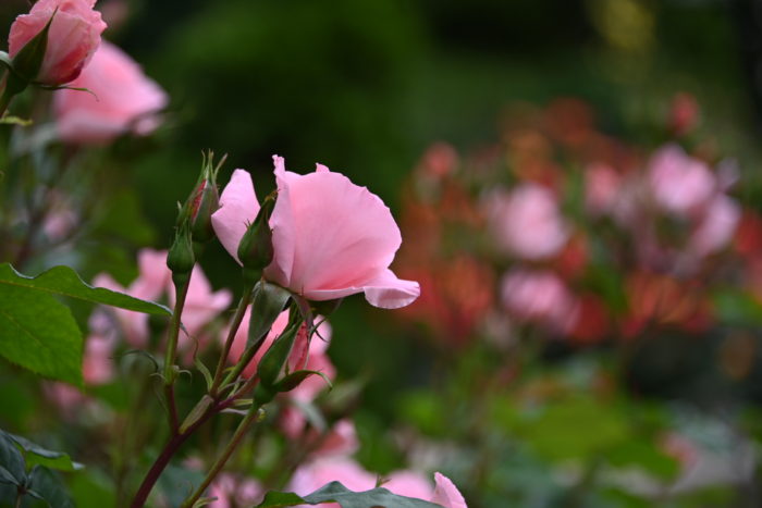 薔薇を見て考えている