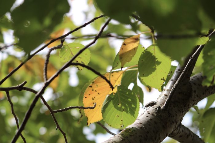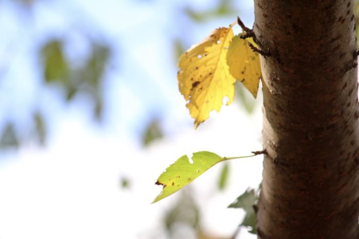 桜の枯葉を踏みしめ歩く