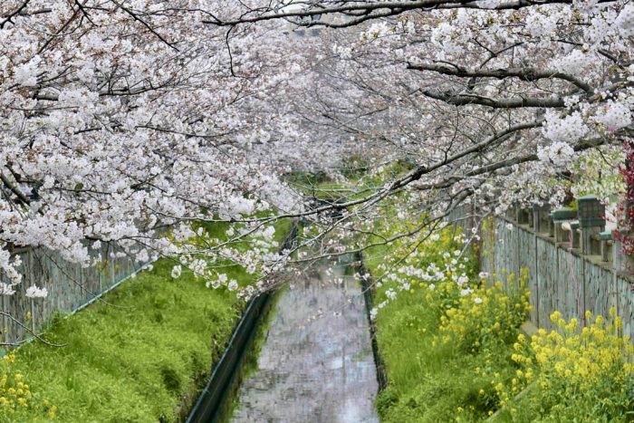 桜連なる真間川を